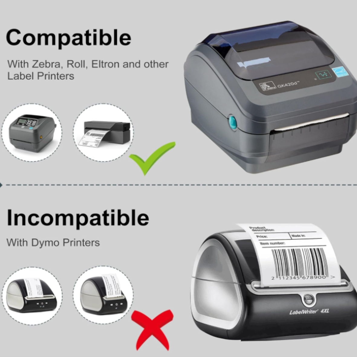 • Fully compatible with popular direct thermal printers, including Zebra, Fargo, Elton, Datamax, Sato, Intermec, and NEX models.