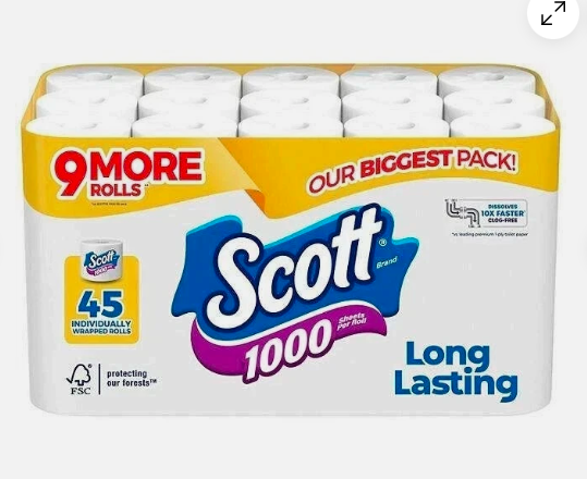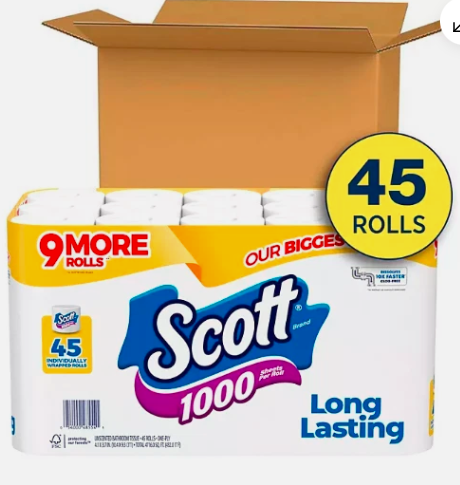 Scott 1000 Toilet Paper helps you spend time on what matters most with fewer roll changes and more value. With Scott 1000 Toilet Paper, you get 45 packs of 1000 sheets, so you have plenty of toilet paper for you and your loved ones. Plus, each roll of Scott 1000 bathroom tissue helps you get the job done with 1000 durable 1-layer sheets and lasts longer, dissolves faster* and breaks down 10x faster**.