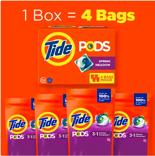 Experience the revolution in laundry cleaning with Tide PODS laundry detergent pacs. These small yet mighty pacs offer a 3-in-1 breakthrough solution, combining highly concentrated detergent soap, stain remover, and color protector in one. Infused with the fresh floral notes of the Spring Meadow scent, your clothes will not only be cleaner but also smell great. Super concentrated with 90% cleaning ingredients, these pacs rejuvenate even the dingiest of clothes, ensuring brighter brights and whiter whites, wash after wash.