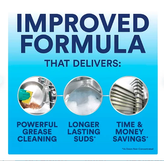 • Dawn dish detergent saves you up to 6000 gallons of hot water vs. private label* (*based on typical product performance, sink sizes and washes using four sinks a day).